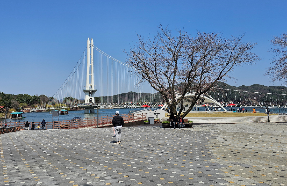 먼저, 예당호 출렁다리를 건너서 반대편 까지 갔다 오셔서 강아지랑 본격적으로 산책을 하시면 좋을 것 같습니다. 안타깝게도 예당호 출렁다리는 애견동반이 되지 않습니다. 지난번에 갔을 때는 안고 가라고 하더군요. 저희집 강아지는 25kg이나 되는 중형견인데 너무 웃겼습니다.ㅎㅎ
