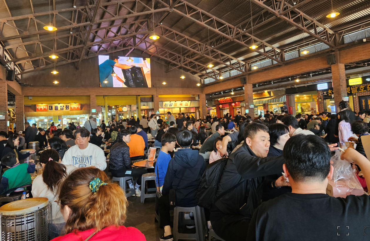 메인홀인 푸드코트에서 사온 음식을 편하게 먹을 수 있는 구조 인데요. 시장 여기저기를 둘러보면서 맛있는 음식과 요리, 간식을 사서 푸드코트에서 음식을 드셔도 됩니다. 또한, 푸드코트에는 상차림만 전문으로 하는 곳이 있어서 그 곳을 이용하면 삼겹살을 구워 먹을 수도 있고, 기타 짜자면, 짬뽕도 사 드실 수 있습니다.
